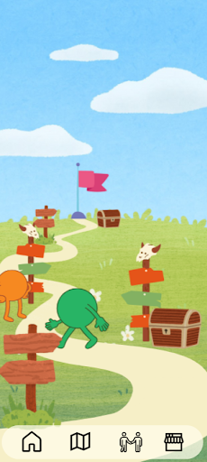 - A visual representation of the avatar, with a home, map, friends, and shop screen.